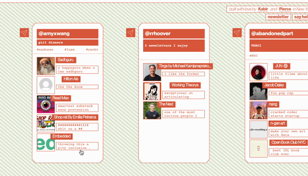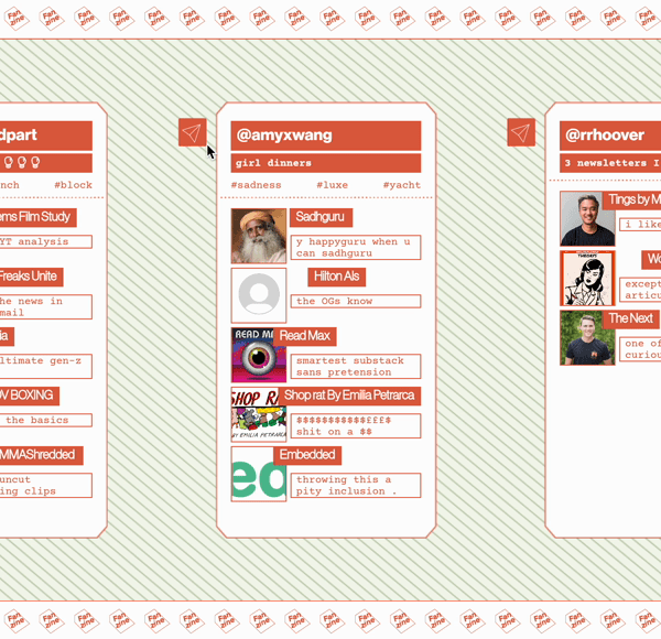 As a reminder: Fanzine is a labor of love by myself and Pierce that is a more authentic way to discover creators — via recommendations from people like you, with no AI or algorithms. No app. No log-ins. Desktop-first for now.